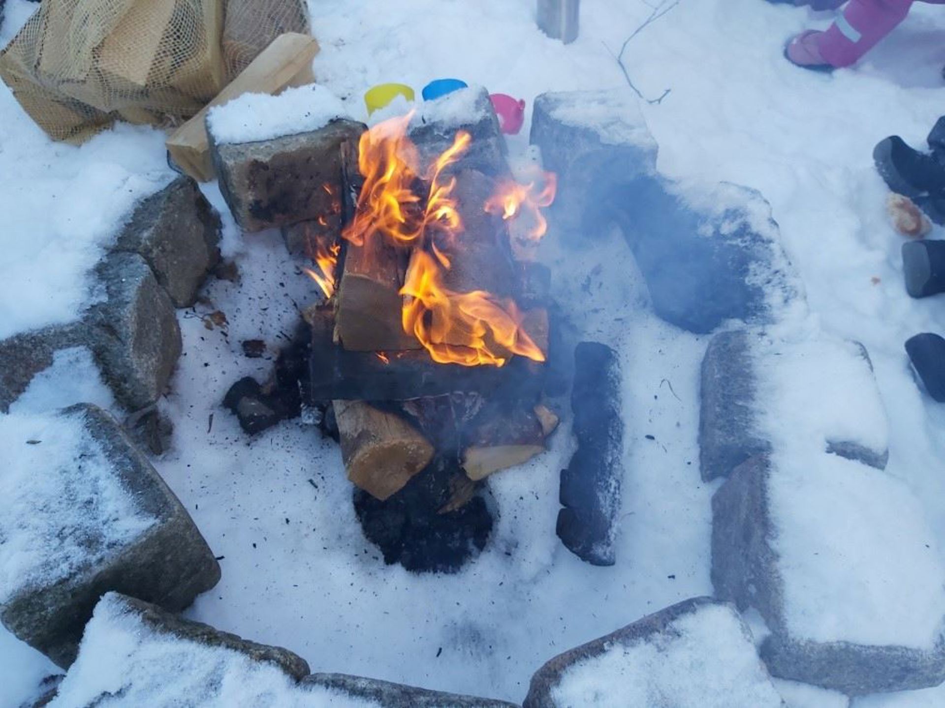 Idag har vi feiret at vi er tilbake på gult nivå! Vi har kost oss med kakao og boller rundt bålet i Luddeskogen (kohortvis selvfølgelig:-))