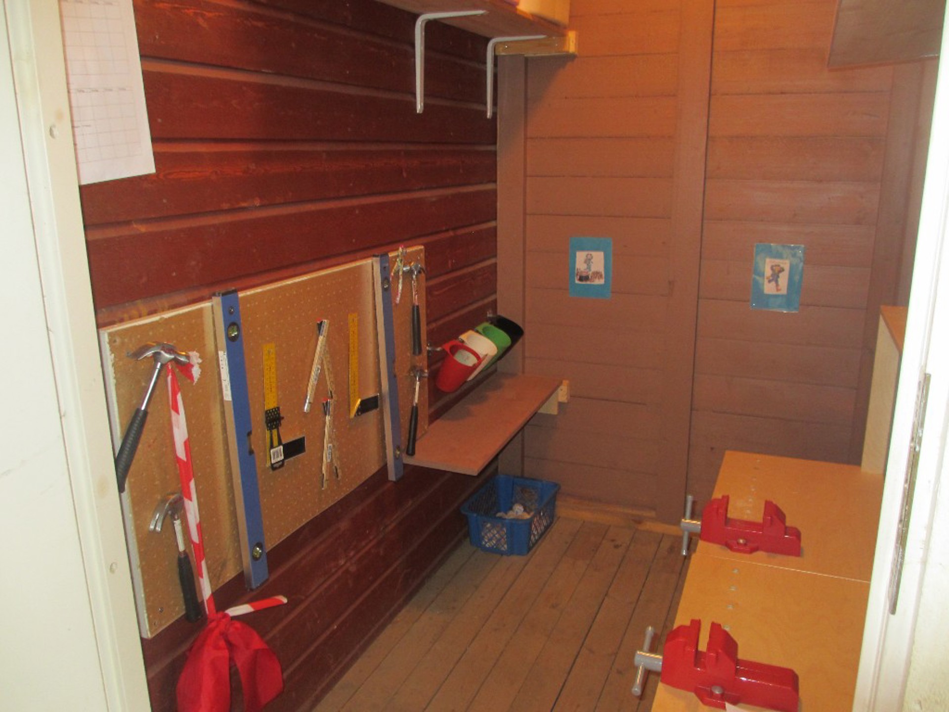 Et nytt rom som gir nye muligheter for kreativ utfoldelse i barnehagen. Prosjektgruppa "Hammerfest" har hatt fokus på å berike uteleken, og tok i bruk en av utebodene til å lage en snekkerbu! Bravo!!