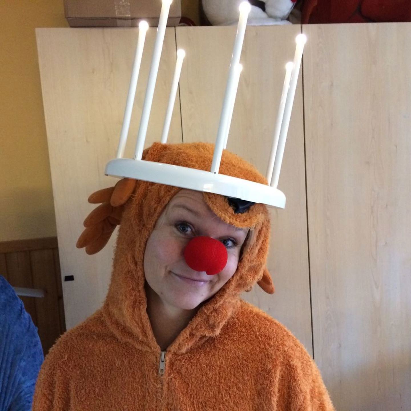 På dagens adventsamling kom Rudolf inn med Luciakrone og lys i hånda, han ville gjerne være Lucia sammen med barnehagens Lucia. Men når han spurte barna om han kunne være barnehagens Lucia, ropte alle barna i kor "NEI"! Han spurte hvorfor ikke, og fikk til svar at han var et reinsdyr. Rudolf syns det var urettferdig at han, selvom han var både gutt og reinsdyr, ikke fikk være Lucia. Det hjalp litt når de ga ham lov til å være reinsdyrenes Lucia.